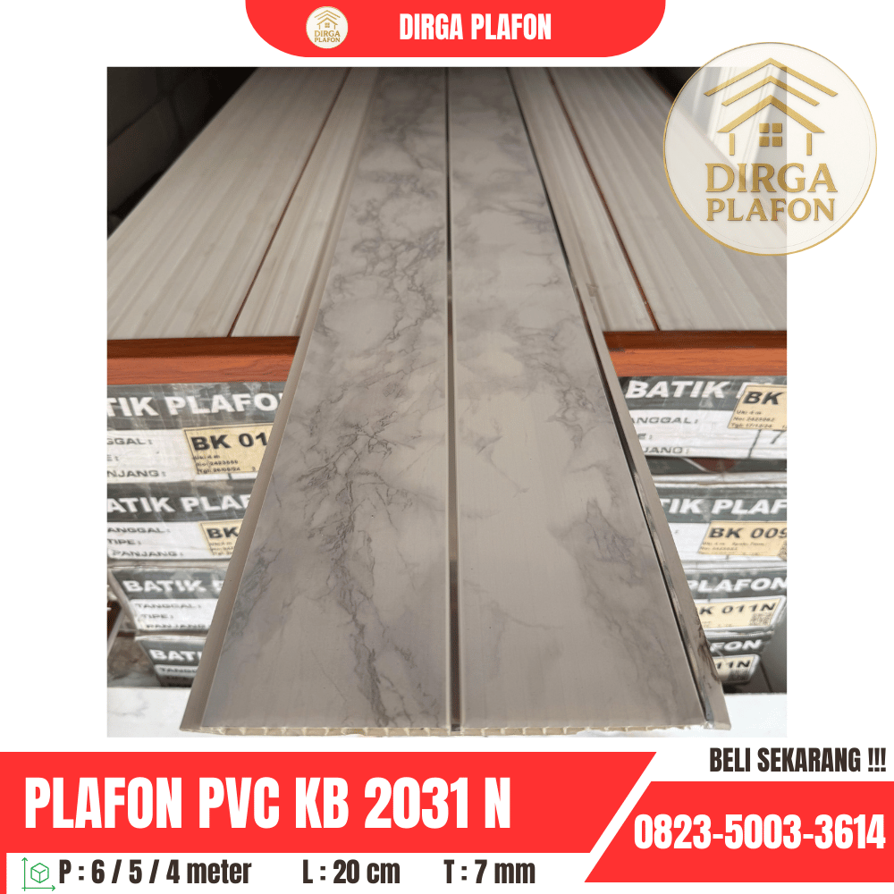 Dalam dunia desain interior dan eksterior, pemilihan material dekorasi memiliki peran penting untuk menciptakan suasana ruangan yang nyaman, indah, dan fungsional. Salah satu elemen yang sering kali dianggap sepele namun memiliki pengaruh besar adalah plafon. Plafon bukan hanya berfungsi sebagai penutup bagian atas ruangan, tetapi juga menjadi bagian dari estetika desain yang dapat meningkatkan kenyamanan visual. Untuk menjawab kebutuhan tersebut, Dirga Plafon menghadirkan produk unggulan Plafon PVC KB 2031 yang dirancang khusus bagi Anda yang mengutamakan kualitas, keindahan, dan kepraktisan.